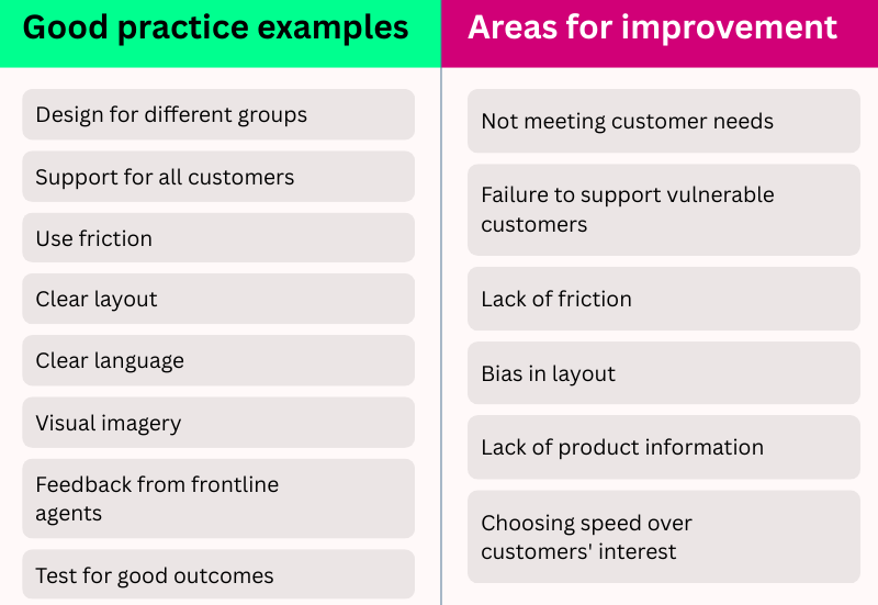 But, if not handled well, design can also drive customers toward making quick or ill-informed decisions that may not be in their best interests, or consistent with the FCA’s Consumer Duty expectations.