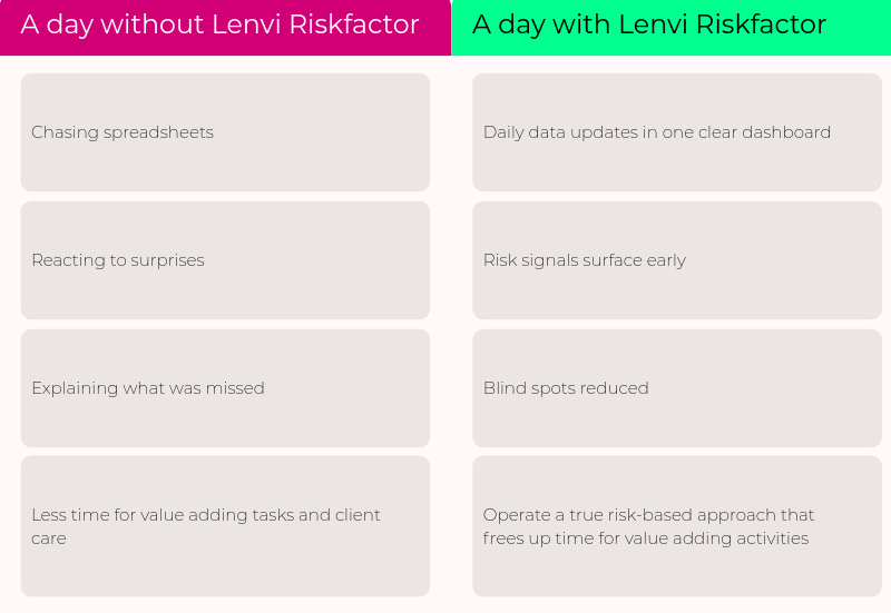 Lenvi Riskfactor was created to solve a challenge every receivables finance lender understands - the ongoing need to identify and mitigate risk before it becomes a loss.