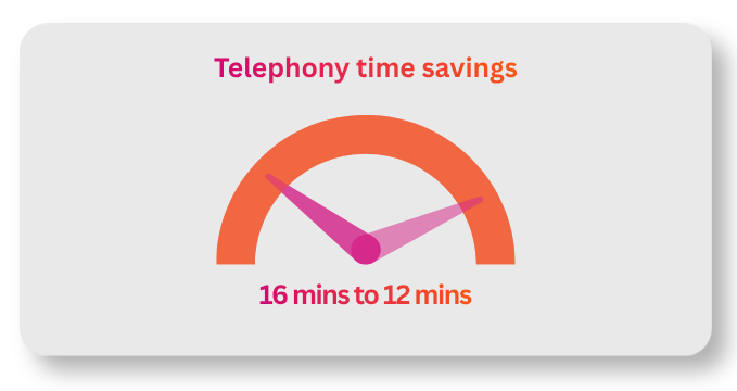 - After deployment, that dropped to just over 12 minutes, delivering an immediate 4-minute reduction in average waiting time.